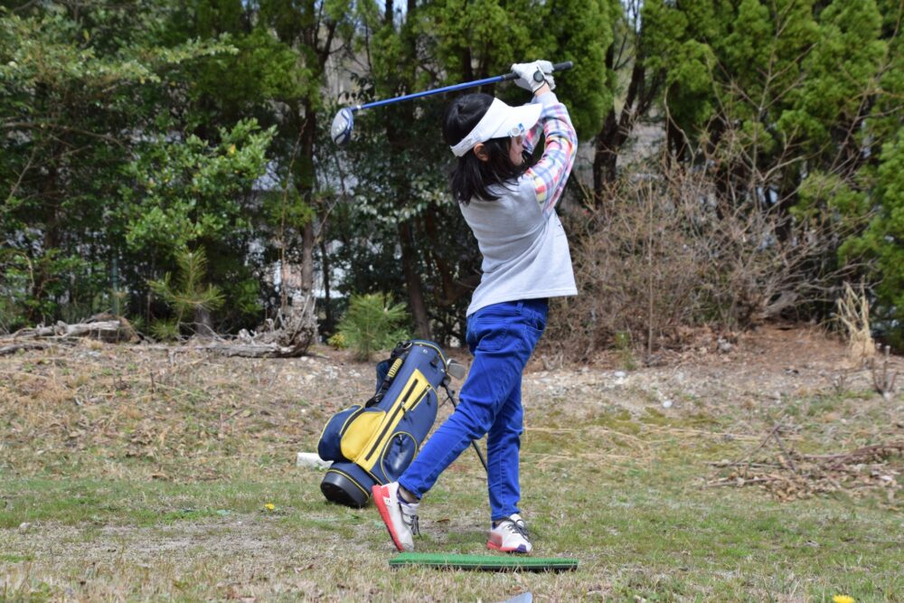 知らない人や周りの人に見られると子供でも緊張して、スタートのティーアップはミスが出やすいのですが、チョロやダフリ、空振りしても気にさせない様に。